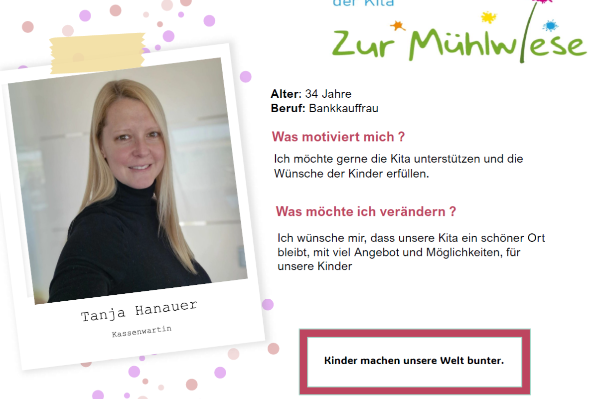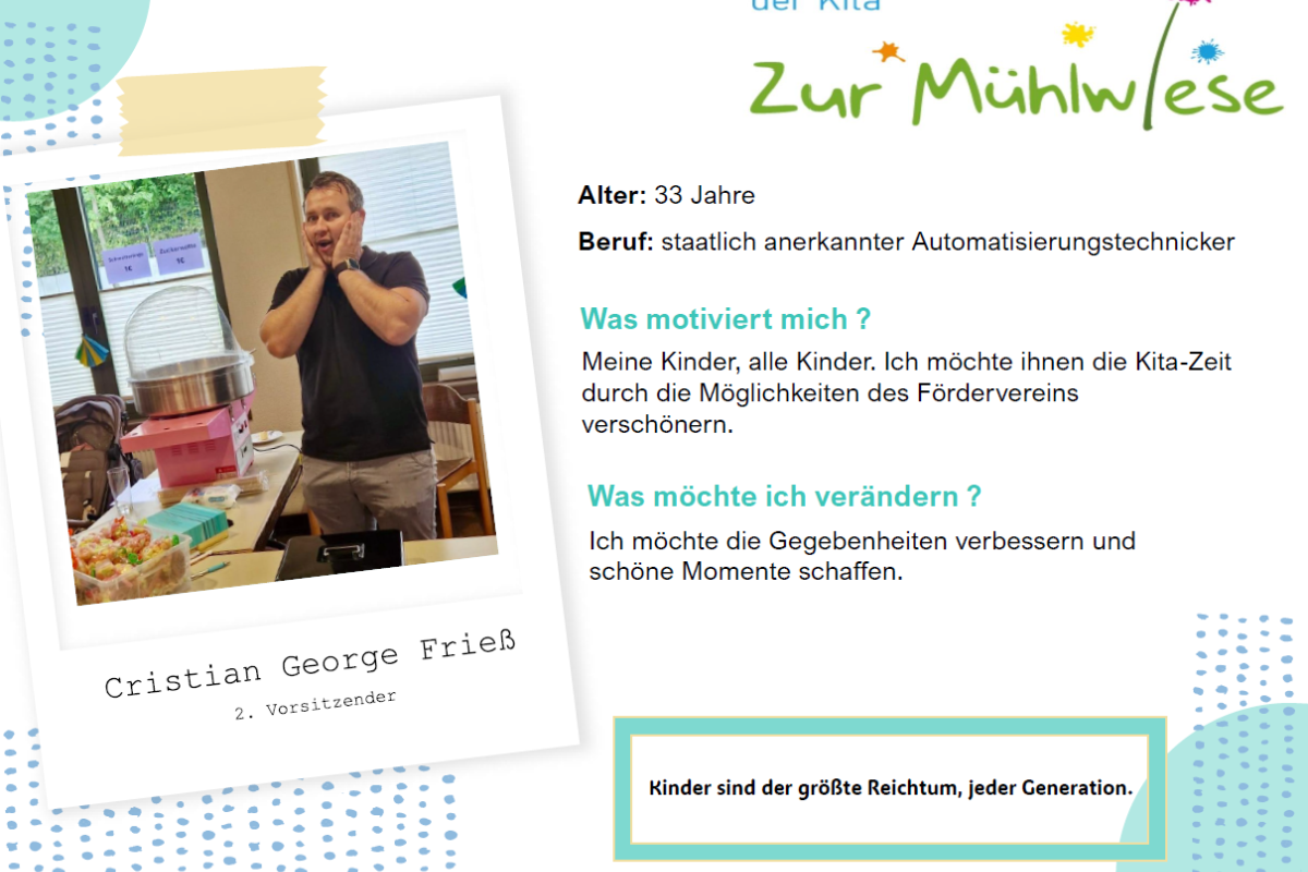 Wir möchten ALLE Eltern, Großeltern & Mitbürger einladen, den Förderverein der Kita „zur Mühlwiese“ e.V. zu unterstützen.